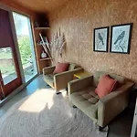 Vous pourrez également admirer la vue sur le jardin depuis les fenêtres. Hut-Spot, Comfortabel Houten Tuinhuis comprend une salle de bains avec une toilette séparée et une douche. Vous pourrez également profiter de la commodité d'un sèche-cheveux et des serviettes.